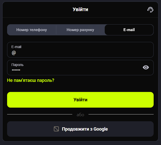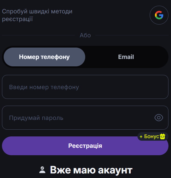 🔗 Соцмережі | Вхід через акаунти Facebook або Google надає можливість швидкої авторизації на платформі, використовуючи свої наявні облікові записи. |